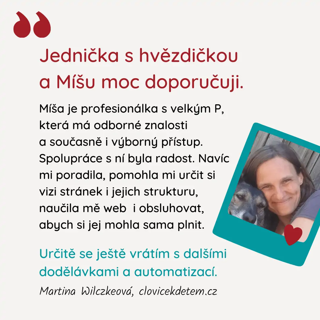 Tento čas je možné využít mnoha způsoby: na konzultace nebo práci na Tvém webu. Můžu Tě seznámit s WordPressem od základů, nebo, pokud už máš přehled, můžeme se společně zaměřit na komplexnější nastavení. Můžeme probrat nejlepší řešení pro Tvé podnikání, a pokud budeš chtít, můžeš některá nastavení nebo automatizaci delegovat rovnou na mě.